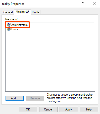 ### Adding User to Administrators Group <a href="#addingrealityusertowindows-addingusertoadministratorsgroup" id="addingrealityusertowindows-addingusertoadministratorsgroup"></a>