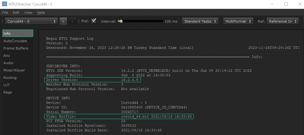 If the Firmware (Video Bitfile) is not matching, proceed with AJA Firmware Update.