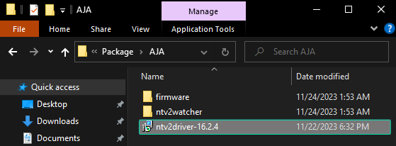Go to Package > AJA > and click on the ntv2driver-16.2.4 installer package.
