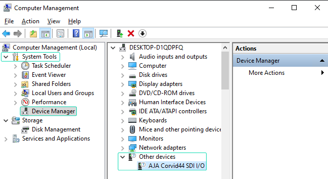 Go to System Tools > Device Manager > Other Devices and check if your AJA Device is present.