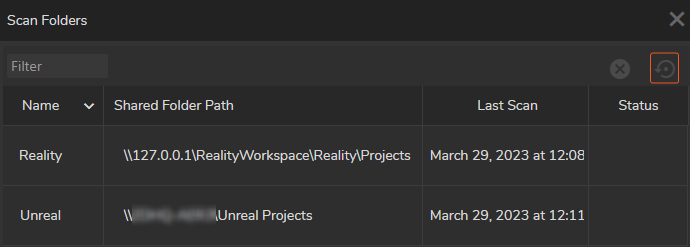 When you add a new **Shared Folder Path**, Reality Hub offers to scan the **Project Source** as shown above.&#x20;