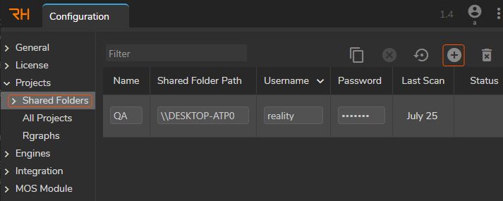 You can scan your project via the <mark style="color:purple;">**`Scan`**</mark> button in the **Configuration** > **Shared Folders** section, as shown above.