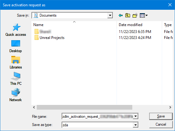 Save the zdlm_activation_request*.zda file in a driver of your choice.