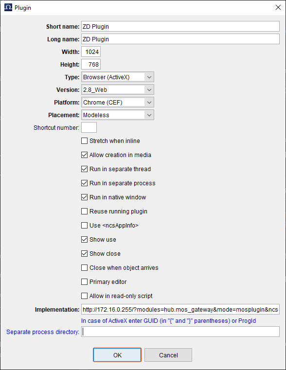 Paste the MOS Plugin URL to the Implementation field inside the MOS Plugin.