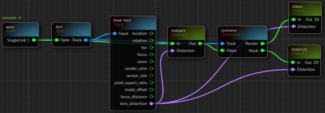 SingleLink 1output pin of theAJAInnode to theIninput pin to theUndistortnode.Connect the