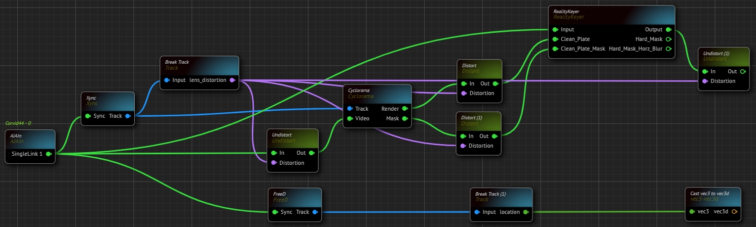 Outoutput pin of the firstDistortnode to theClean Plateinput of theRealityKeyernode.Connect the