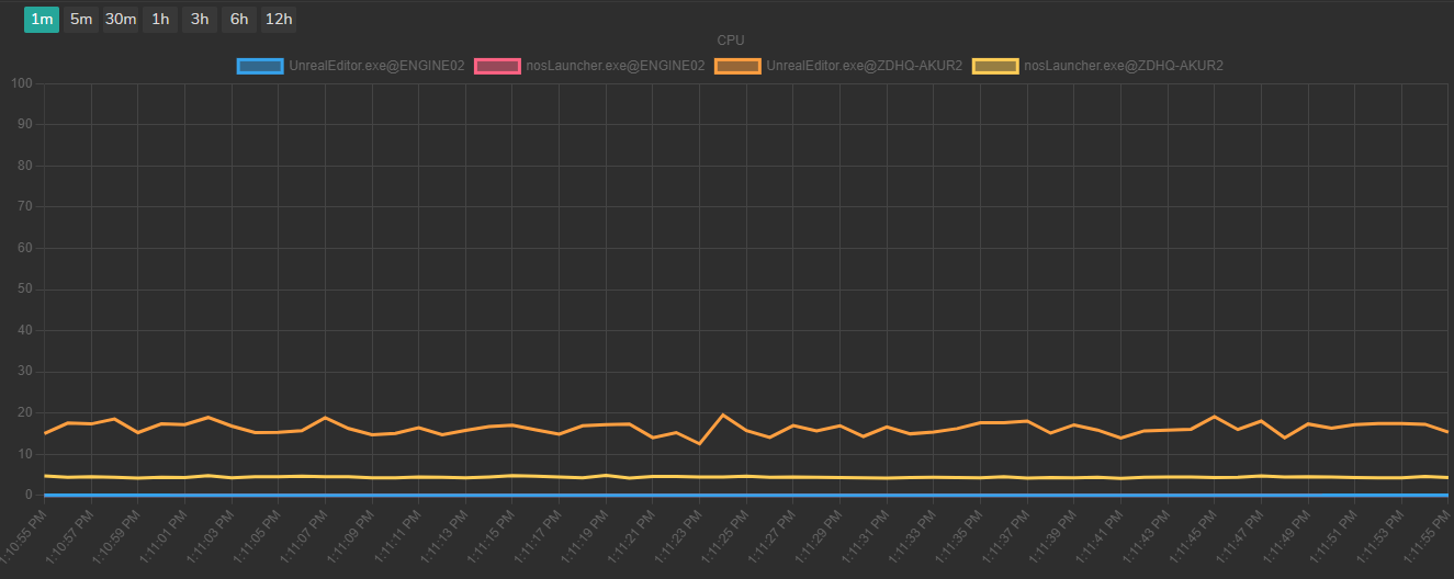 • X-Axis: The horizontal axis of the graph represents time, with each tick mark corresponding to a specific time interval. The time range displayed can be adjusted, ranging from one minute to 12 hours, depending on your selection.