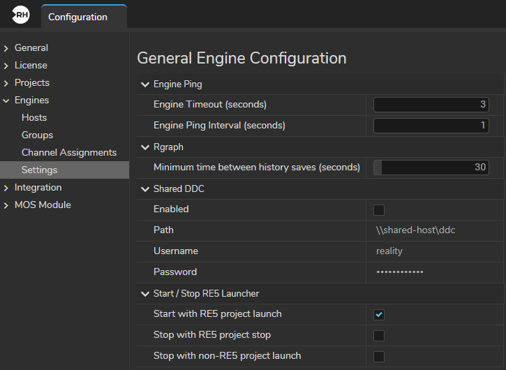 * **Engine Ping Interval (seconds)**: Defines the length of time the Reality Hub waits between ping packets.