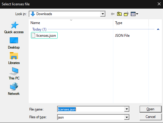 <div align="left"><figure><img src="https://content.gitbook.com/content/bn9QNJikRLdiYumFEboj/blobs/YHnLaNH5gBYkjKp8bJ6c/image.png" alt=""><figcaption><p>Importing Licenses</p></figcaption></figure></div>