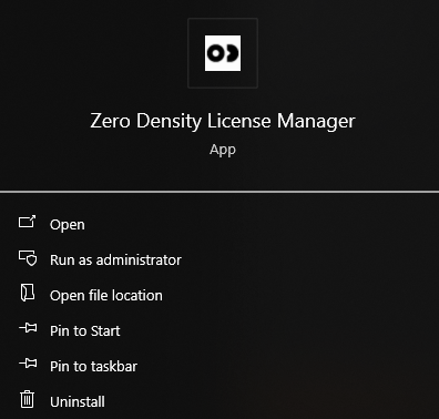 * Launch the Zero Density License Manager from the Windows Startup.&#x20;