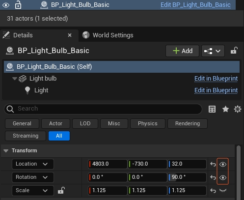 Expose the Location and Rotation parameters by clicking on the eye icon, as displayed in the image above