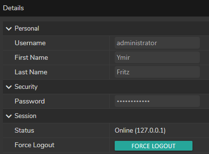 Define personal information (First Name, Last Name, Password) in the Details section.