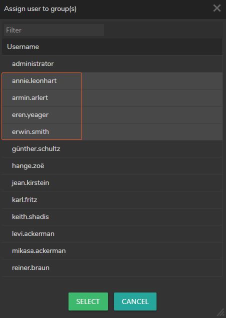 Selectbutton.Repeat the same process for assigning multiple users to different user groups.