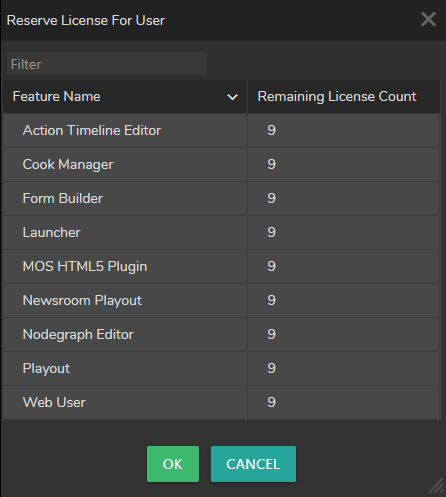 +(Plus) icon.In the pop-up menu, select the licenses you would like to reserve for the user and click on the