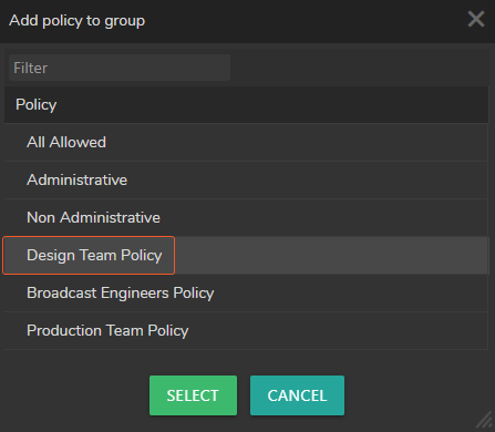 Select a Policy by clicking on a Policy name or select multiple policies by holding CRTL + Left Mouse button, then click the