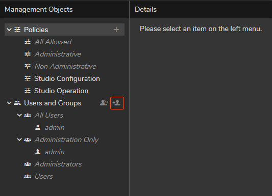 Go to the Users and Groups property group.