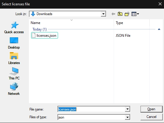 Select the license file you received from Zero Density licensing department and click Open, as demonstrated in the image above.