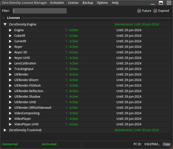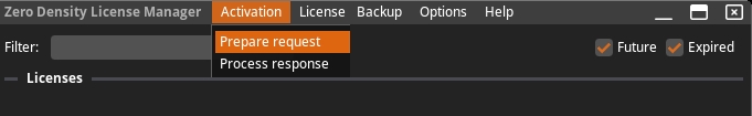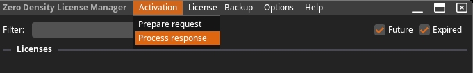 Send the Activation Request file to our licensing department via licensing@zerodensity.io.