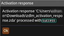 Select the Activation Response file (*.zda) and click Open, as illustrated above.