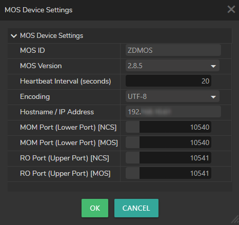* **MOM Port (Lower Port) \[NCS] & \[MOS]**: Define a port number that matches the **iNEWS Media Port**.