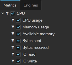 The Metrics subsection allows you to select specific types of metrics to monitor, including: