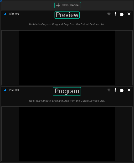 Create two new channels. Rename the first one as "Preview" and the second one as "Program," as shown in the image above.