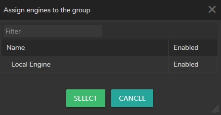 Click on + (Plus) button inside the Assign Engines to the Group.