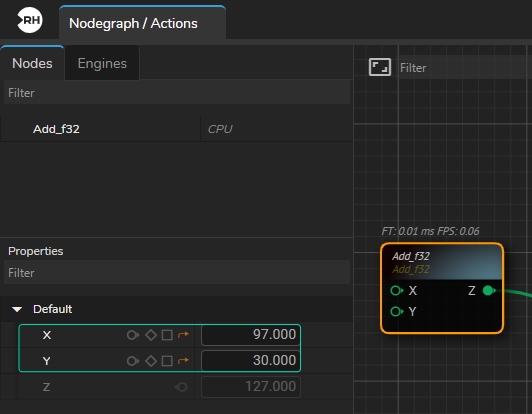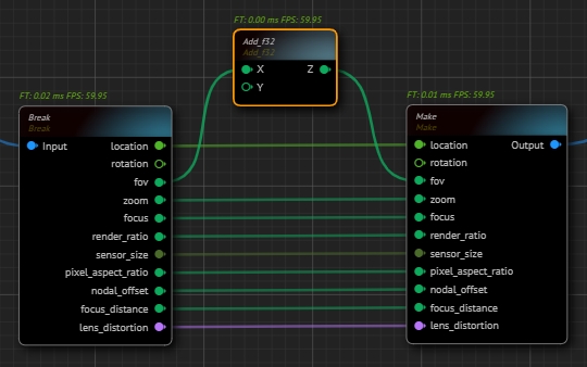 - Connect the - fovoutput of the- Breaknode into the- Xinput of the- Add f32node.