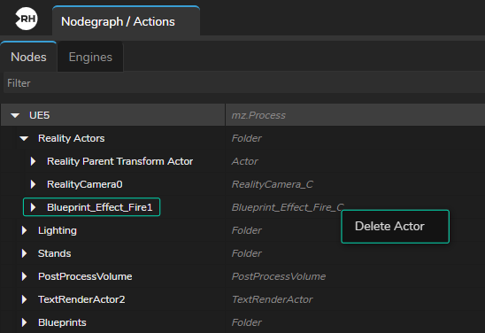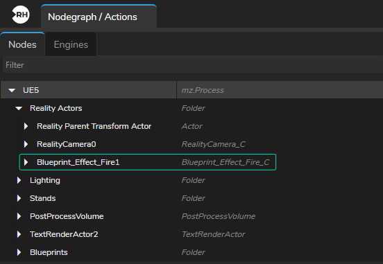 Spawned actors are always listed inside the Reality Actos folders, as illustrated above.