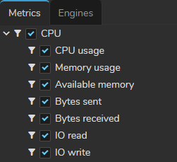 Under each metric type, you can enable and observe various metrics: