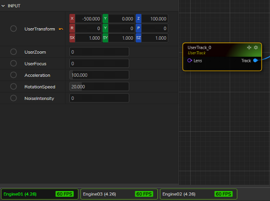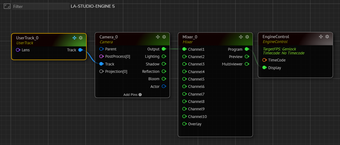 EngineControlnode’sDisplayinput pin toMixer_0node’sProgramoutput pinMixer_0node’sChannel1input pin toCamera_0node’sOutputpinCamera_0node’sTrackinput pin toUserTrack_0node’sTrackpin