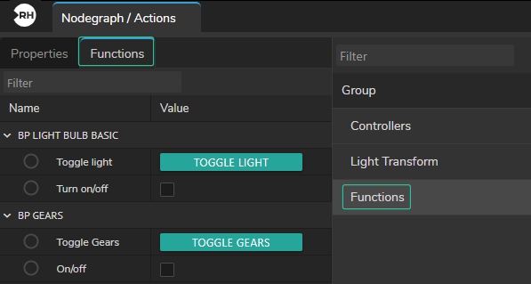 Image 1 shows Exposed Functions inside the Unreal Engine RCP